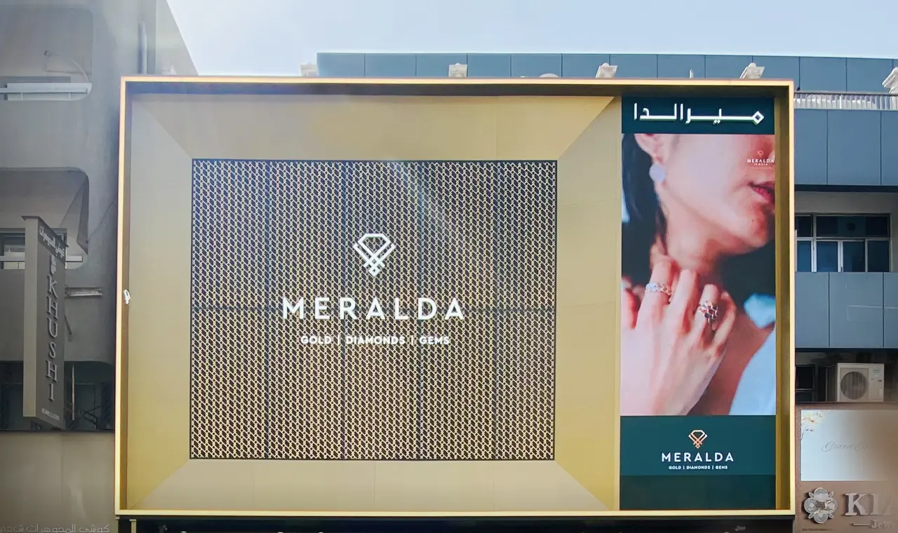 Metroplus Advertising delivered customized retail signage solutions for Meralda Jewels at Meena Bazaar, Dubai. The signage was designed to enhance brand trust and visibility within a busy traditional retail area. Using refined finishes and durable materials, the installation supports strong storefront presence and long-term performance. This project highlights our expertise in jewellery signage solutions across Dubai.